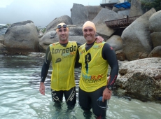 Wow, what a fantastic experience!  The inaugural Torpedo SwimRun was a huge success and a terrific showcase for the coastline, in and out of the water, between Sandy Bay and Clifton.  Most of us ride or run this stretch at least once a week but have never experienced the varying trail and rocky sections, not to mention the interesting water entries and exists.  Apart from the cold water, the weather was perfect with calm seas and cloudy conditions for the run.